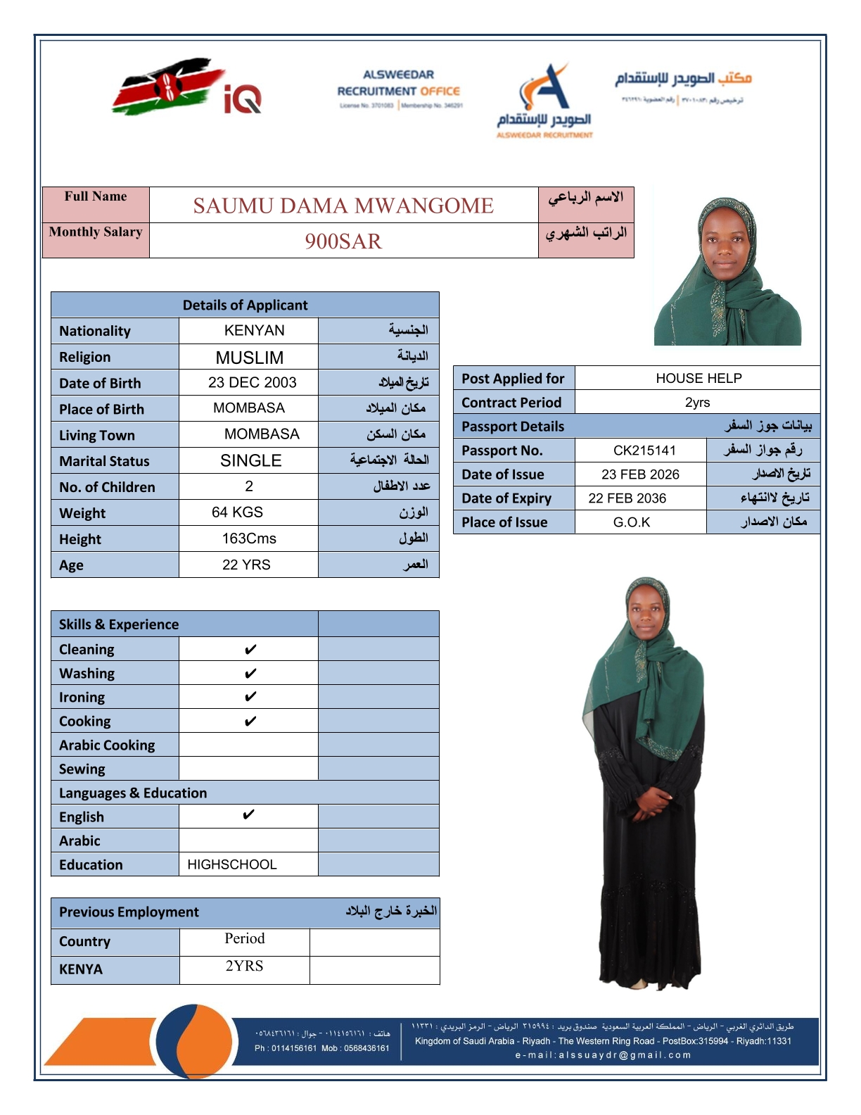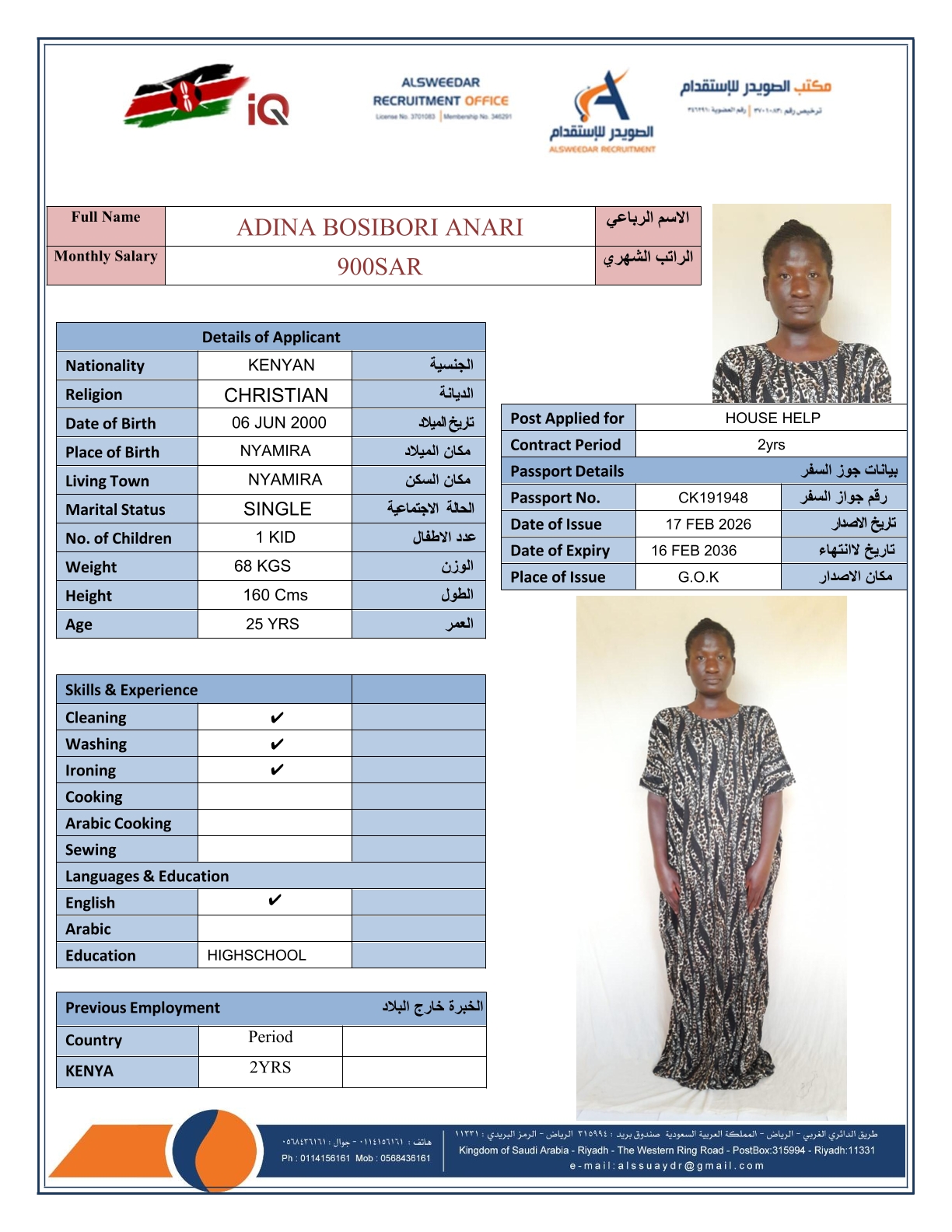 السير الذاتية لعاملات كينيا