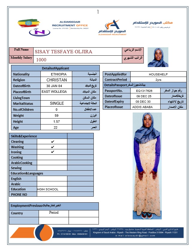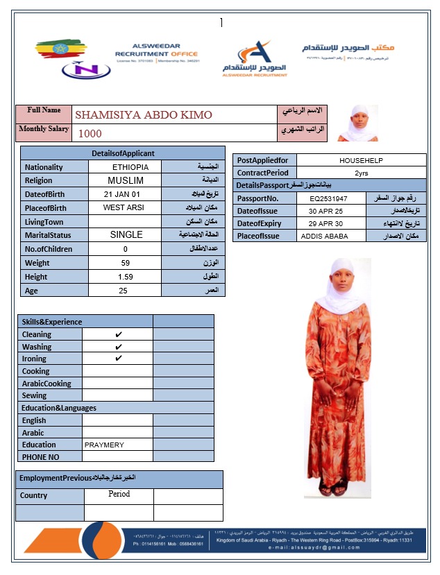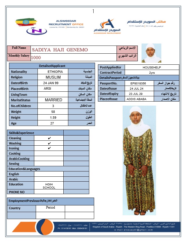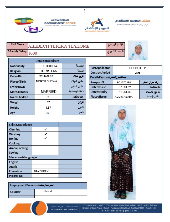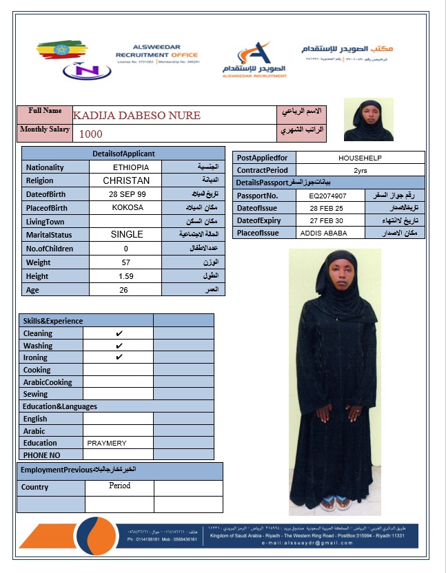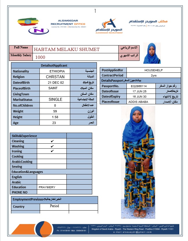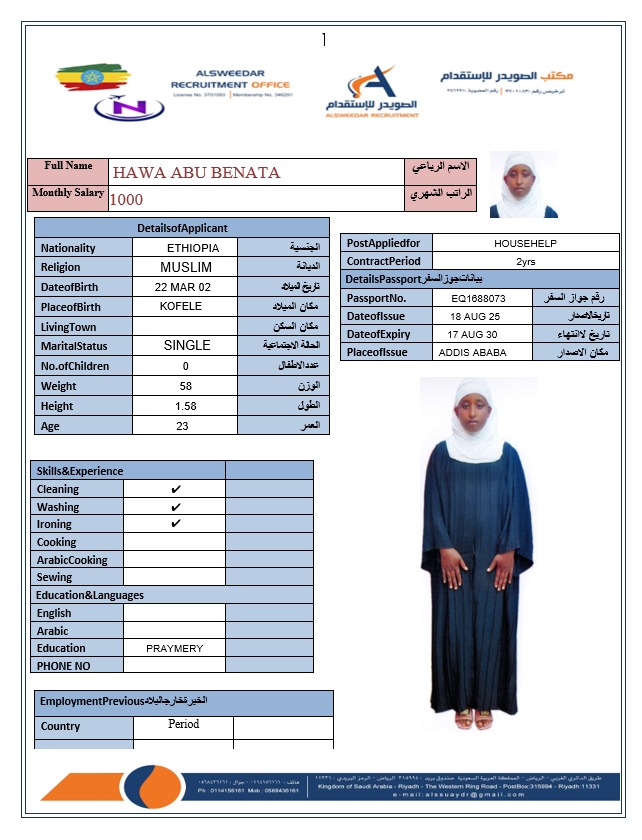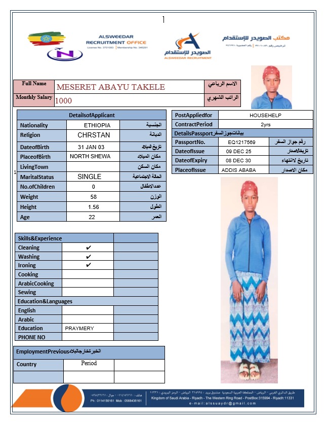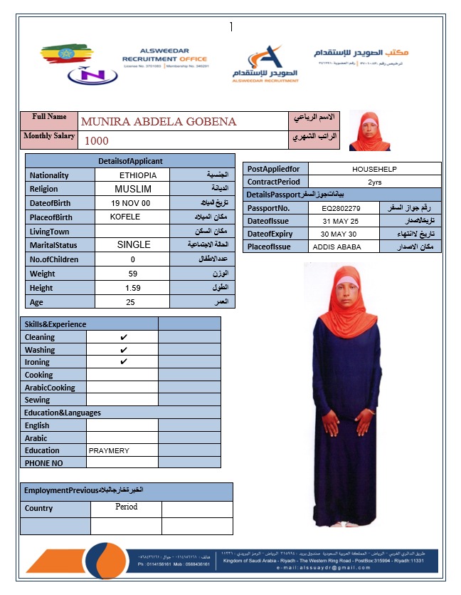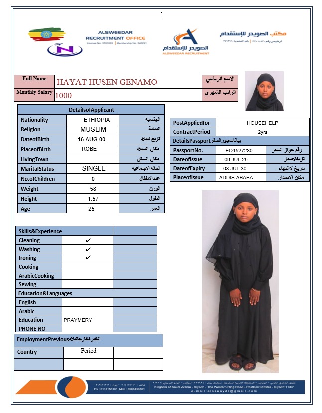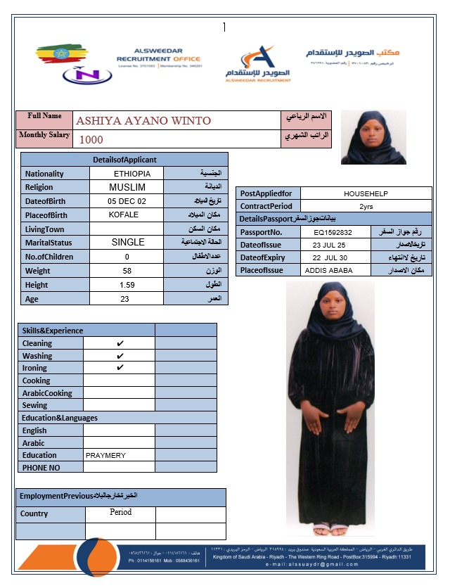 السير الذاتية لعاملات أثيوبيا