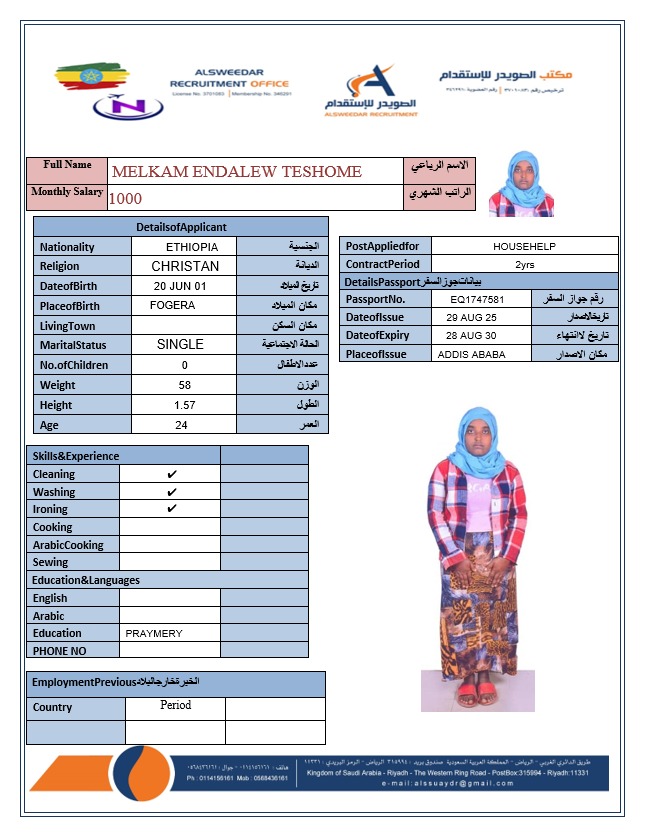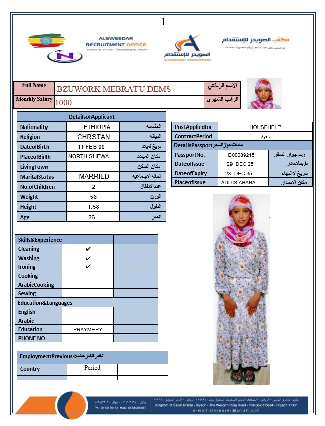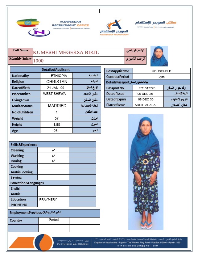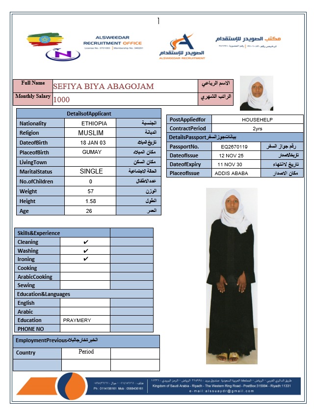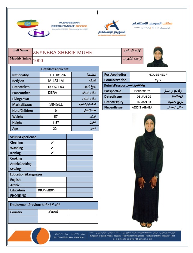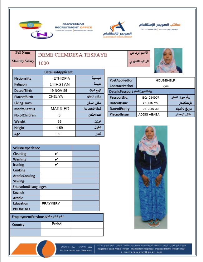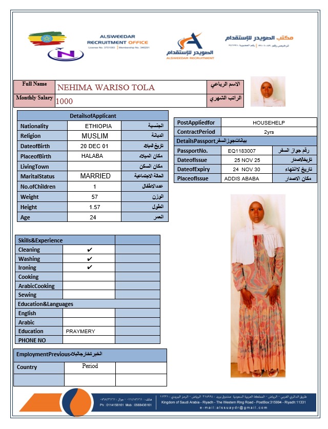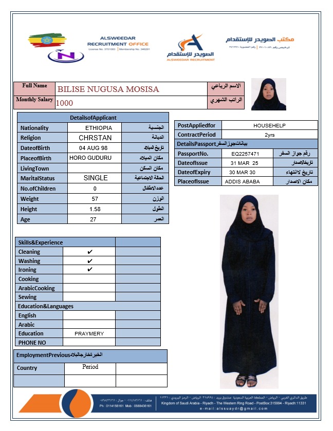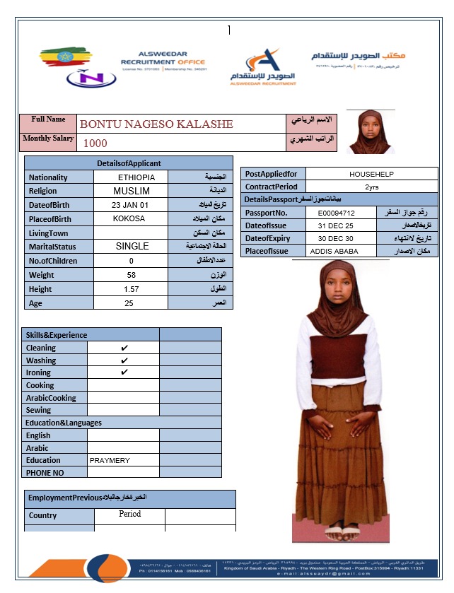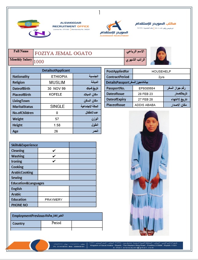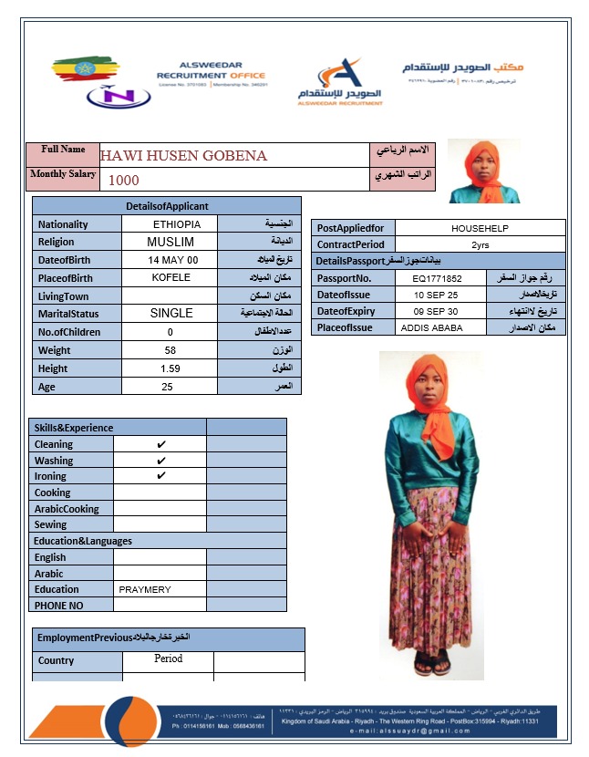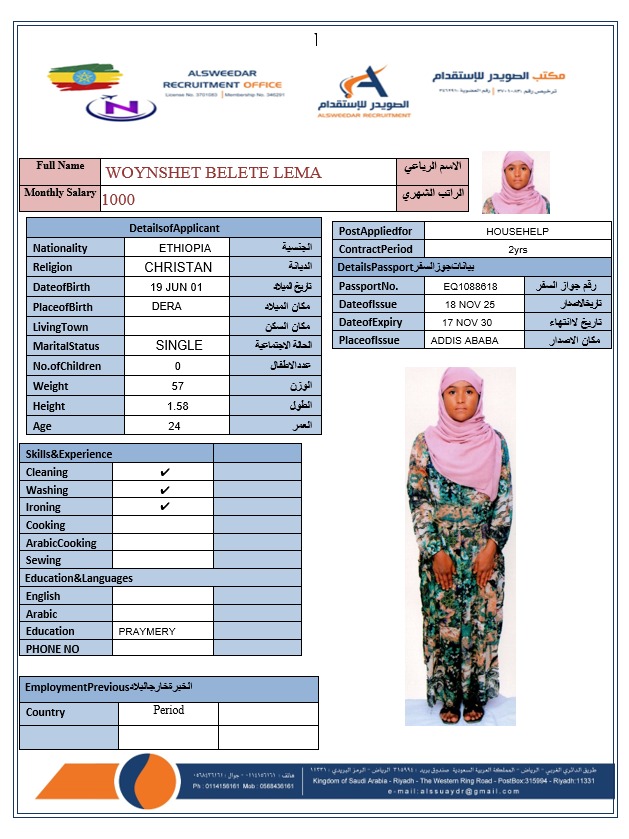السير الذاتية لعاملات أثيوبيا