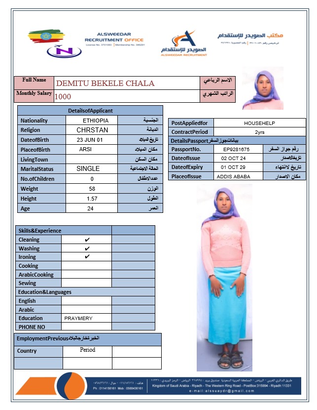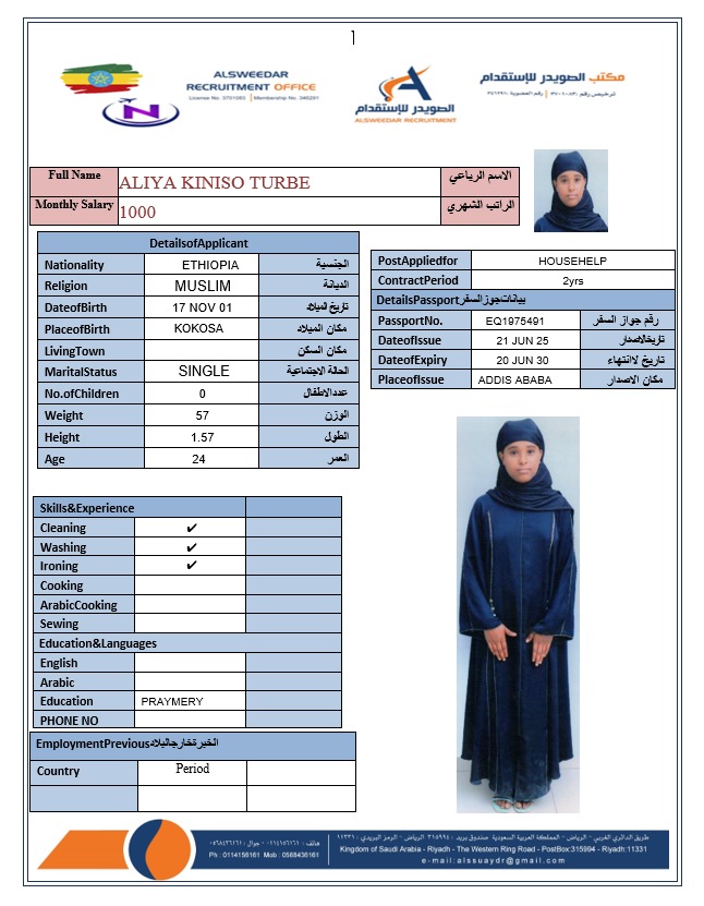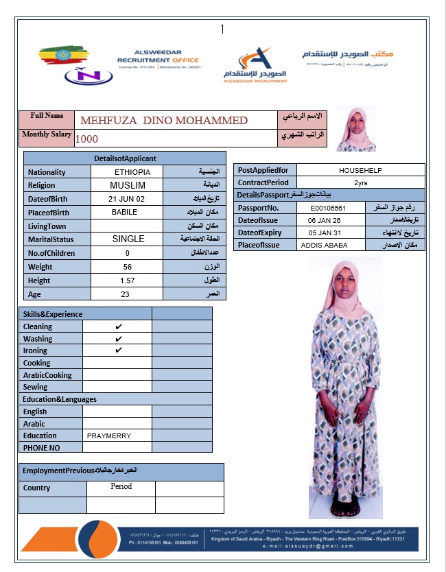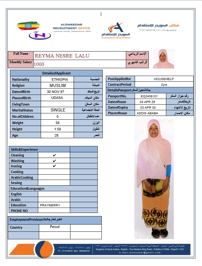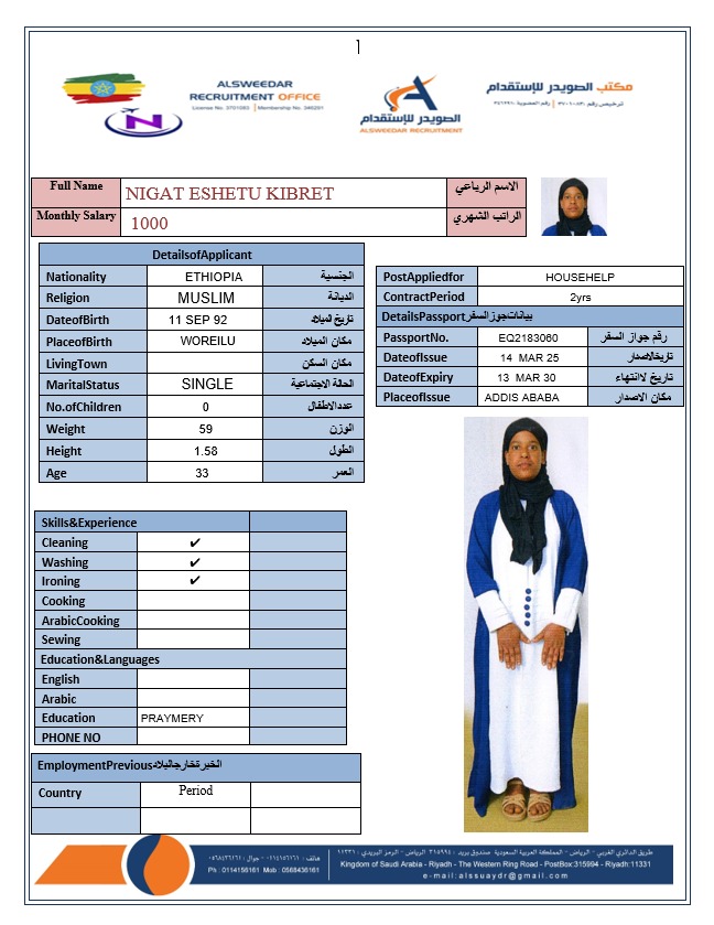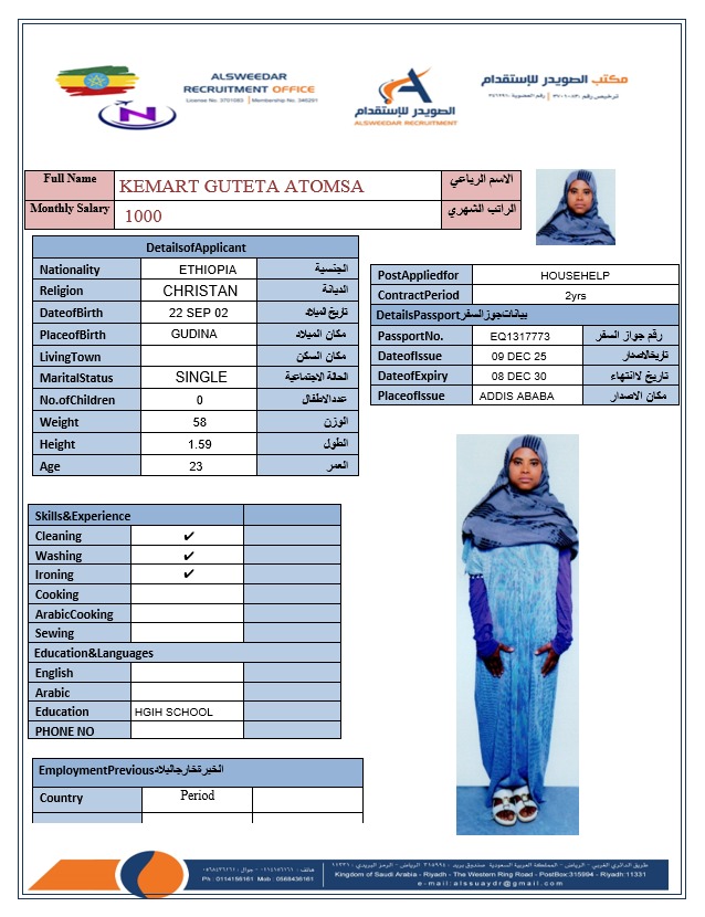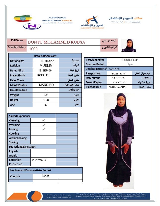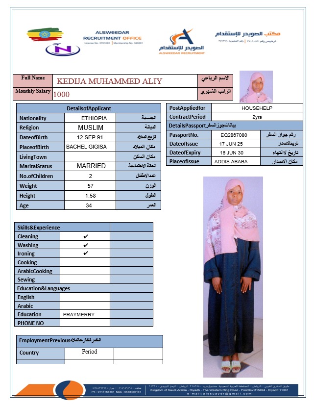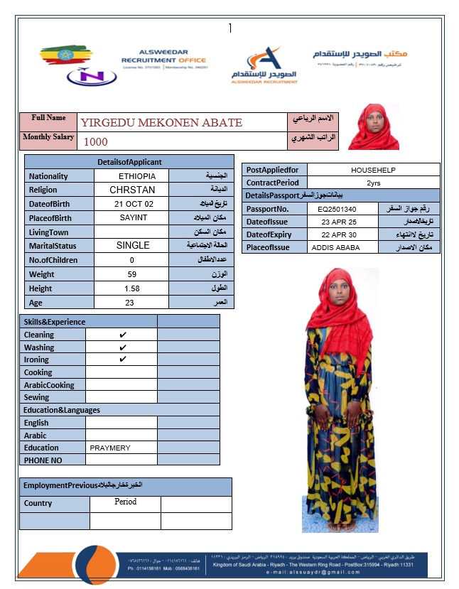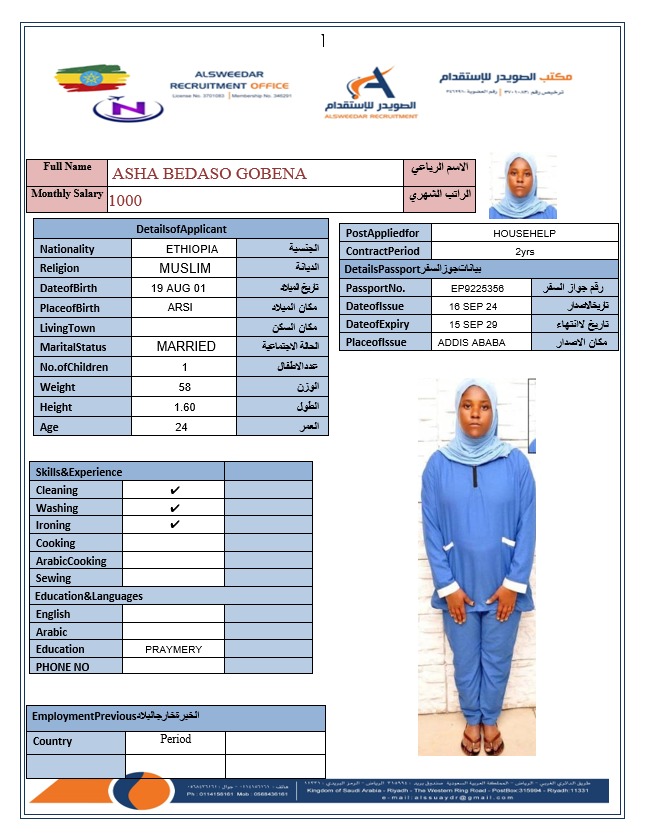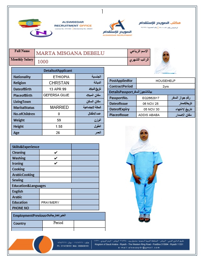 السير الذاتية لعاملات أثيوبيا