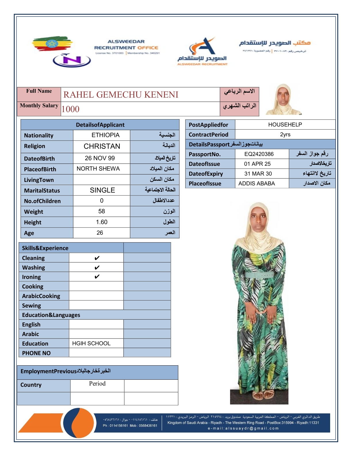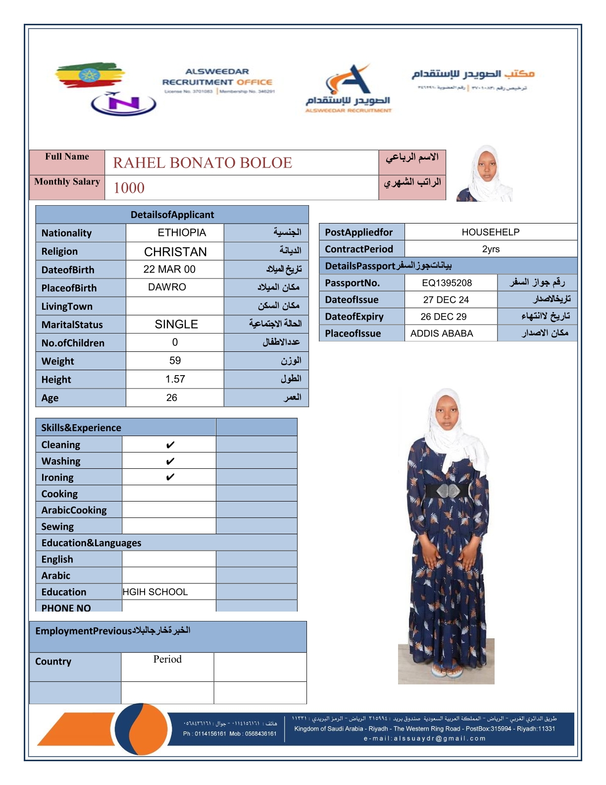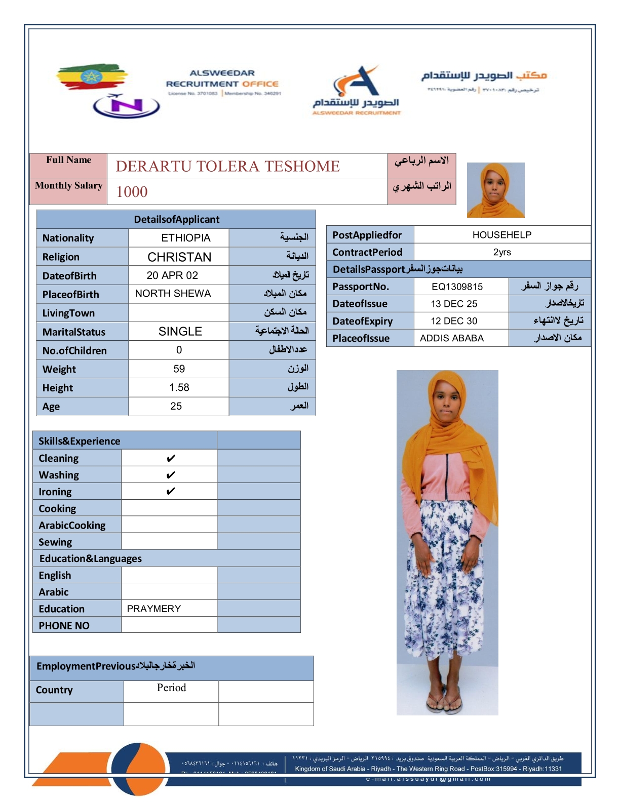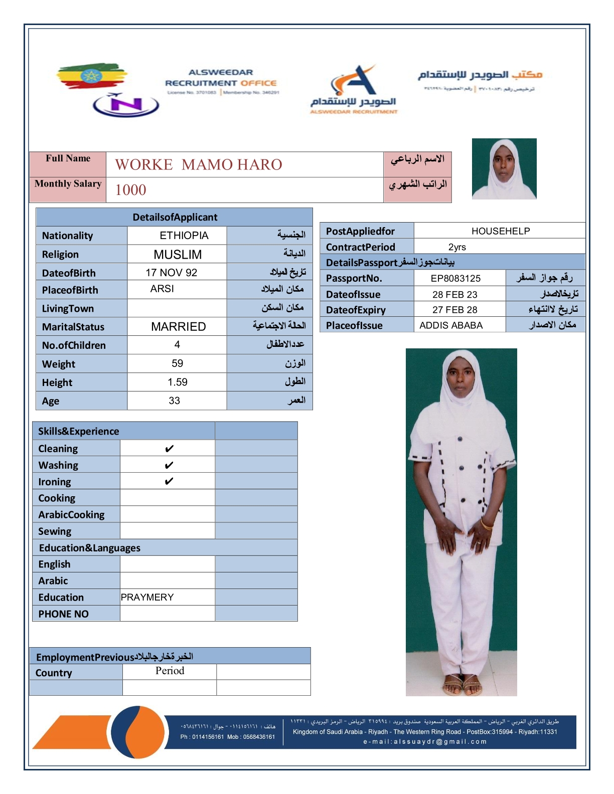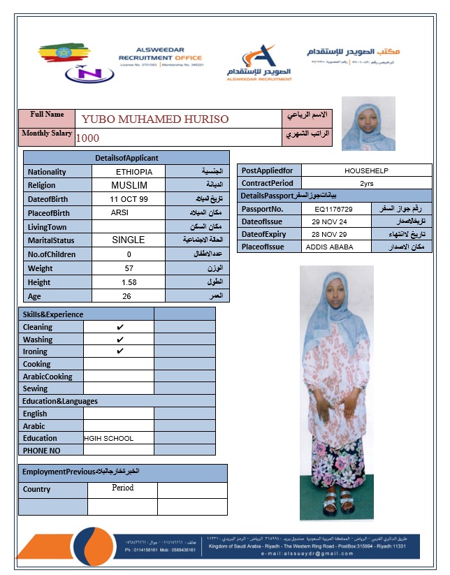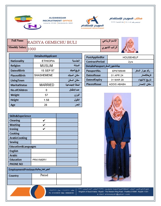 السير الذاتية لعاملات أثيوبيا