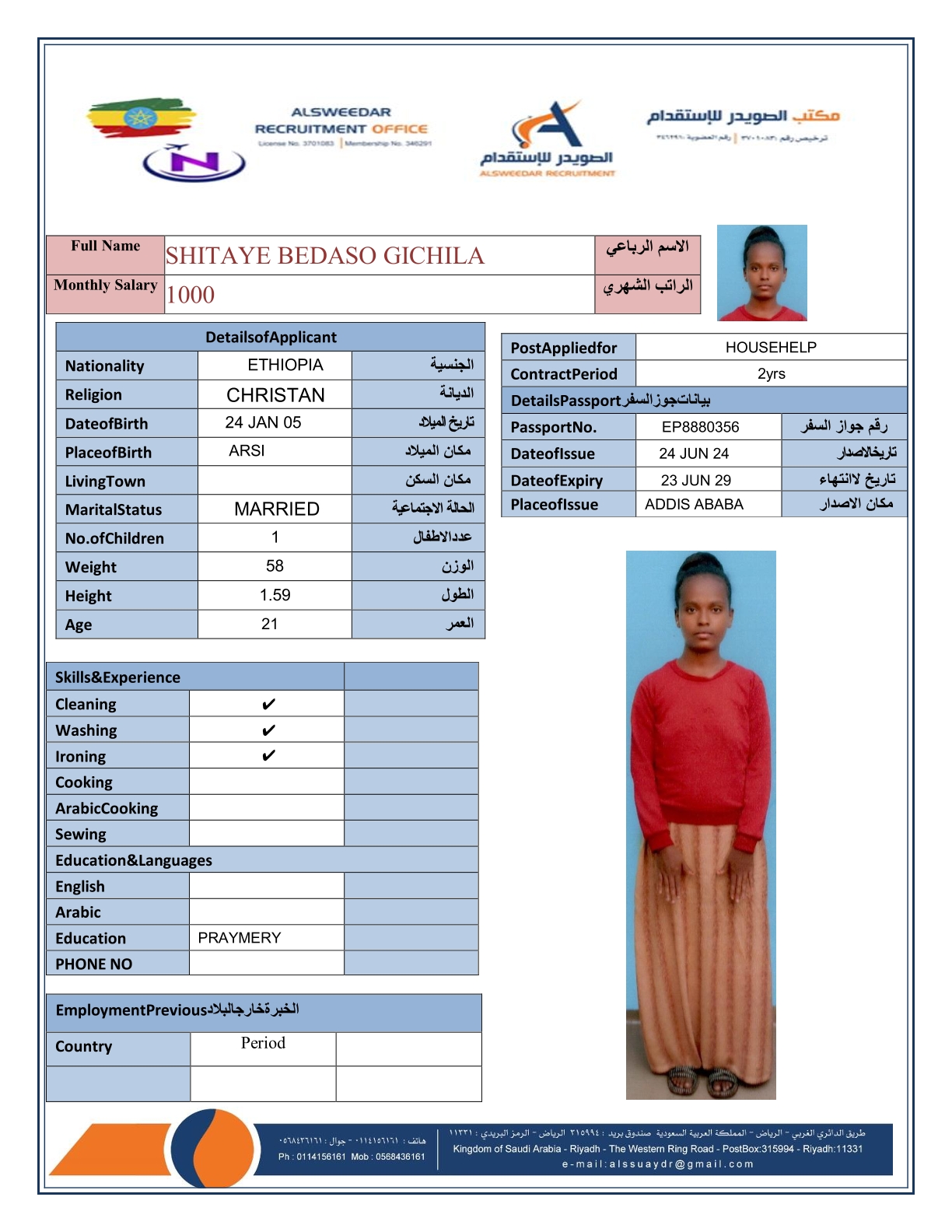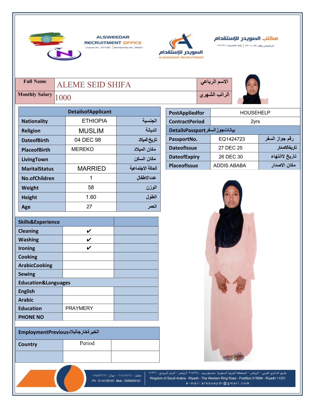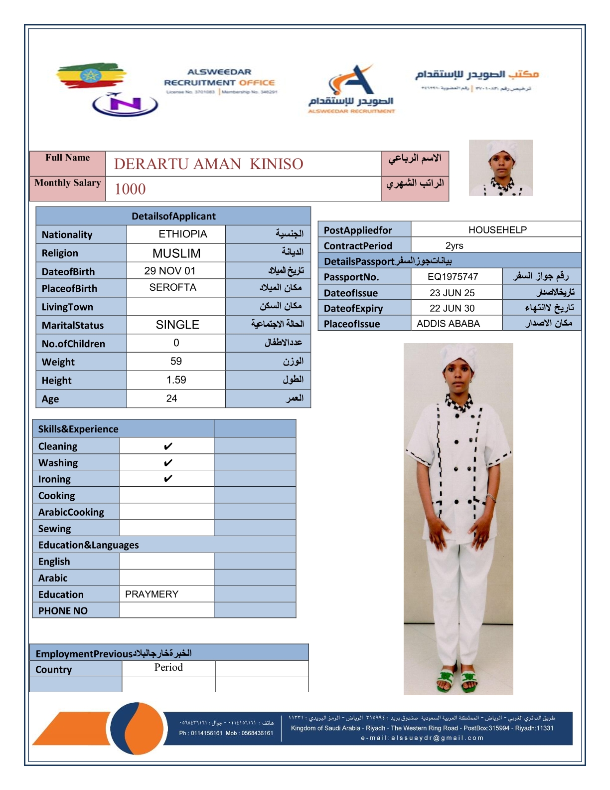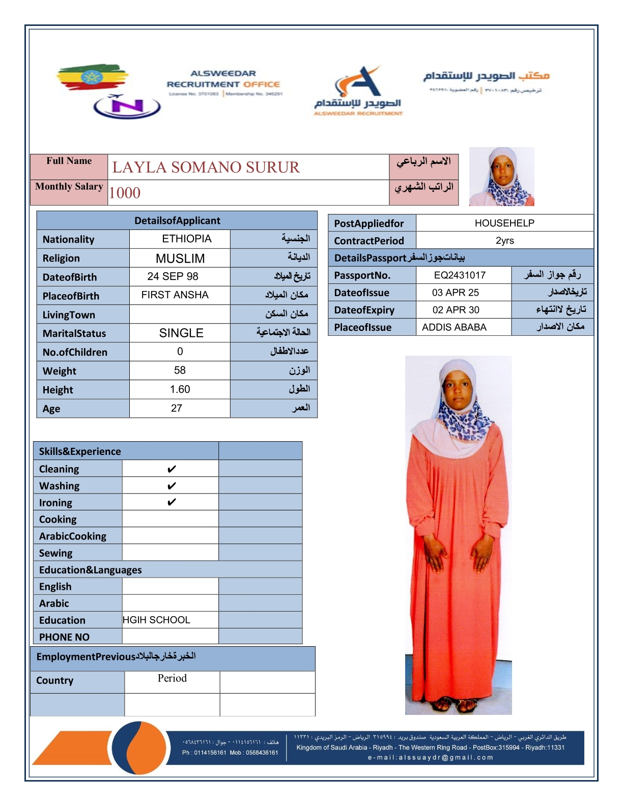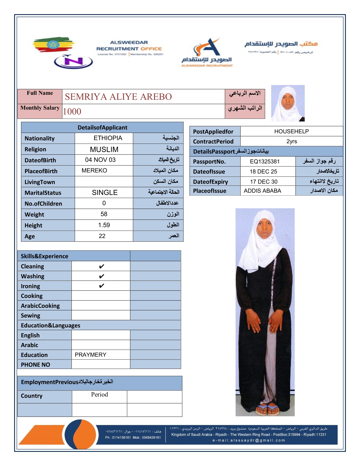 السير الذاتية لعاملات أثيوبيا
