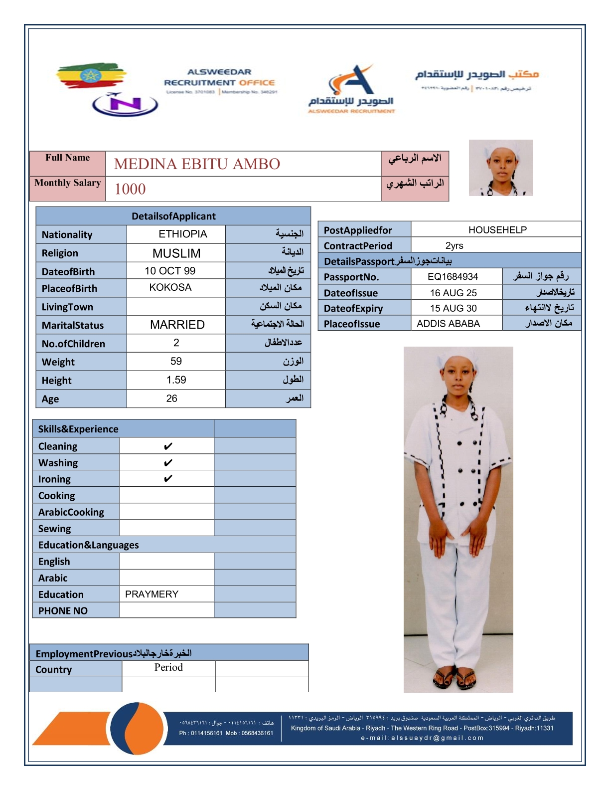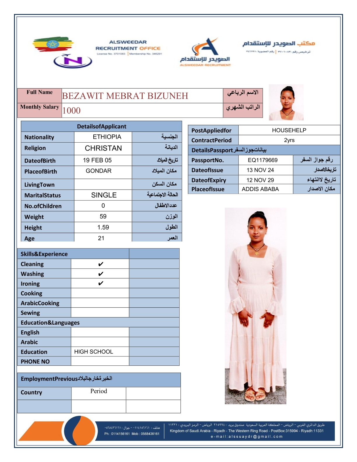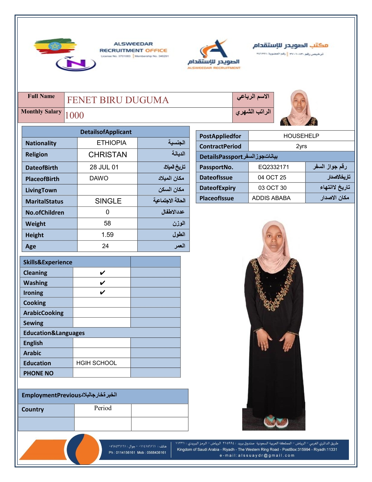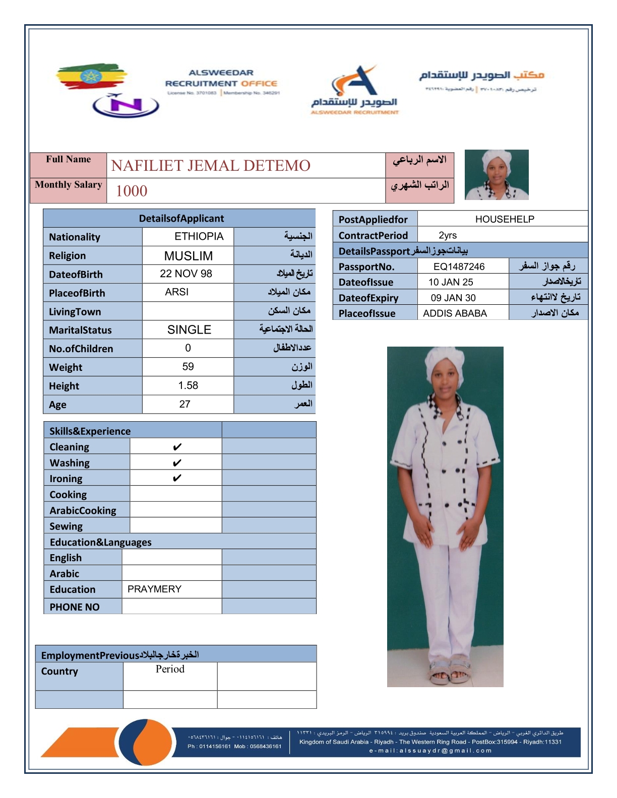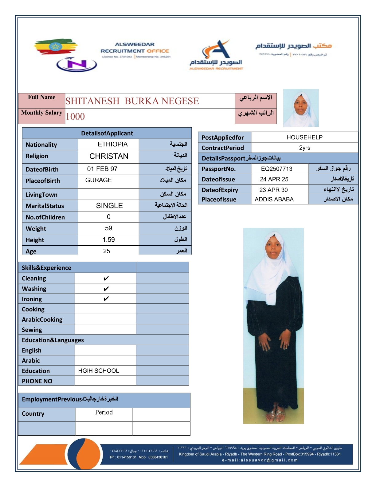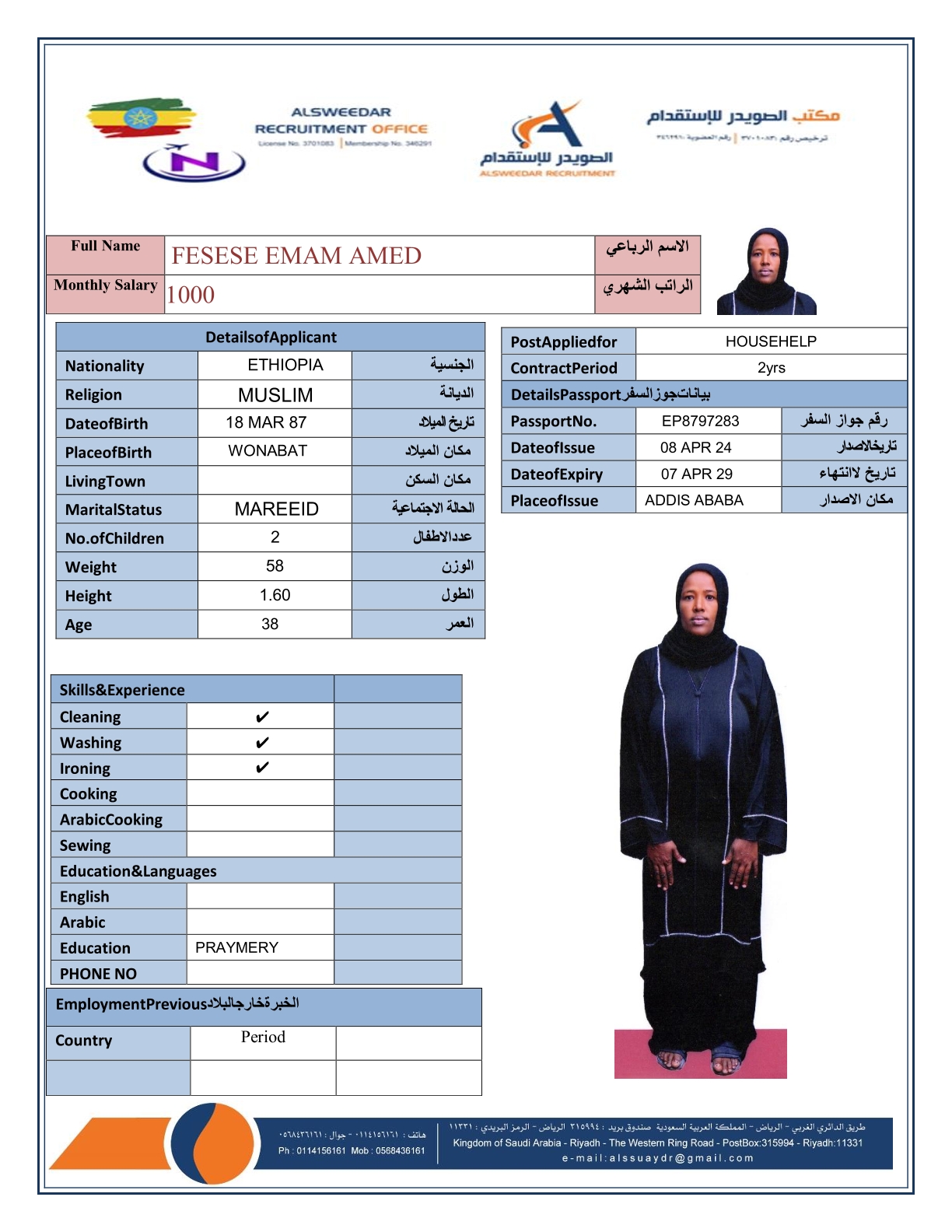 السير الذاتية لعاملات أثيوبيا