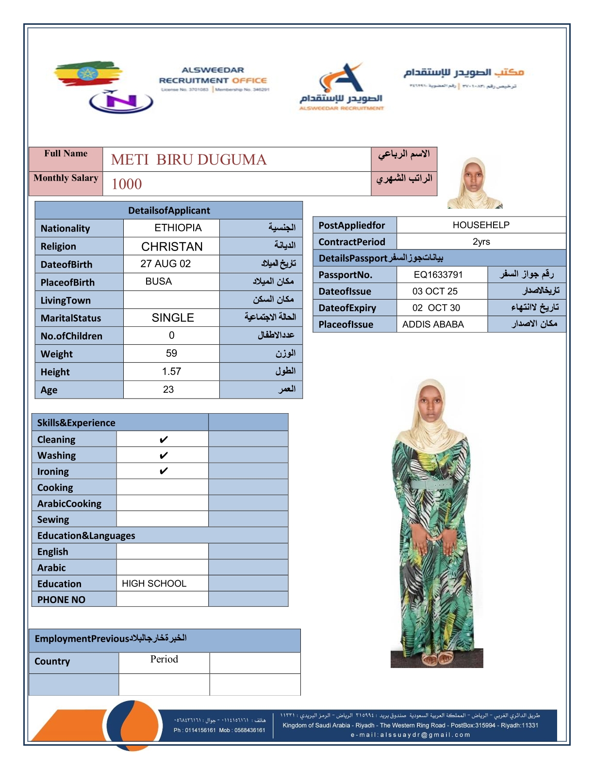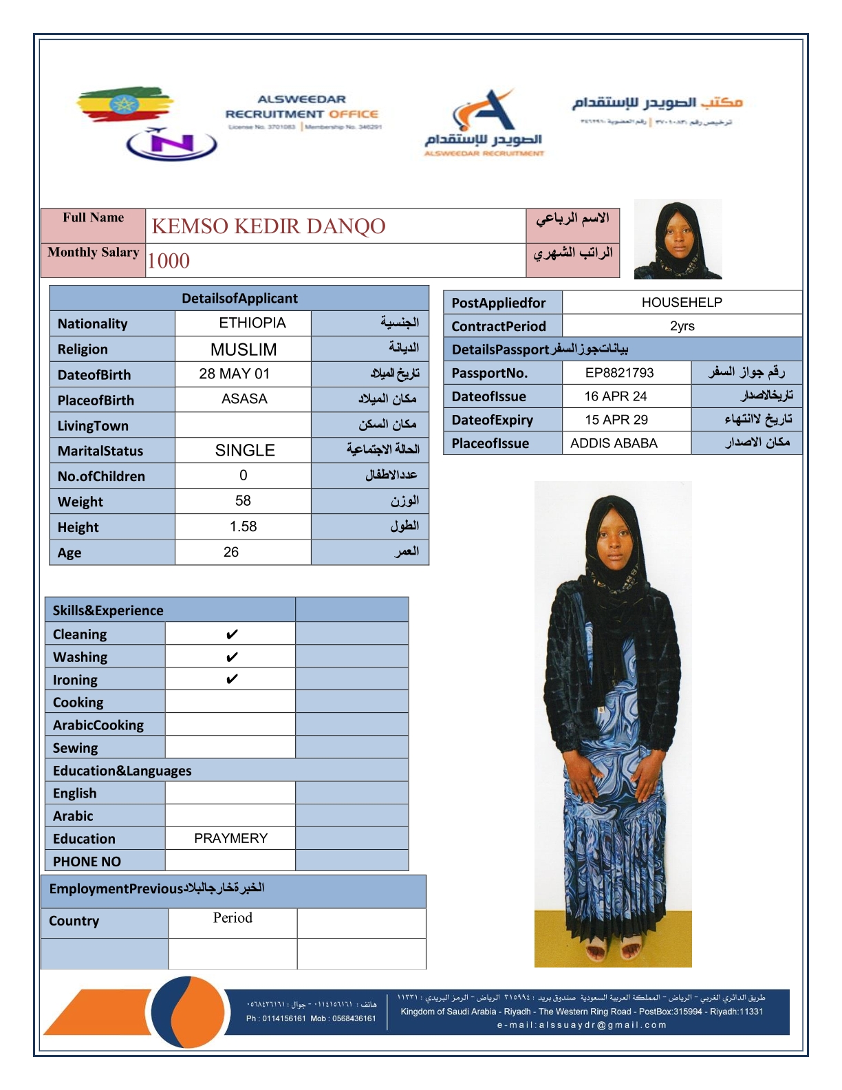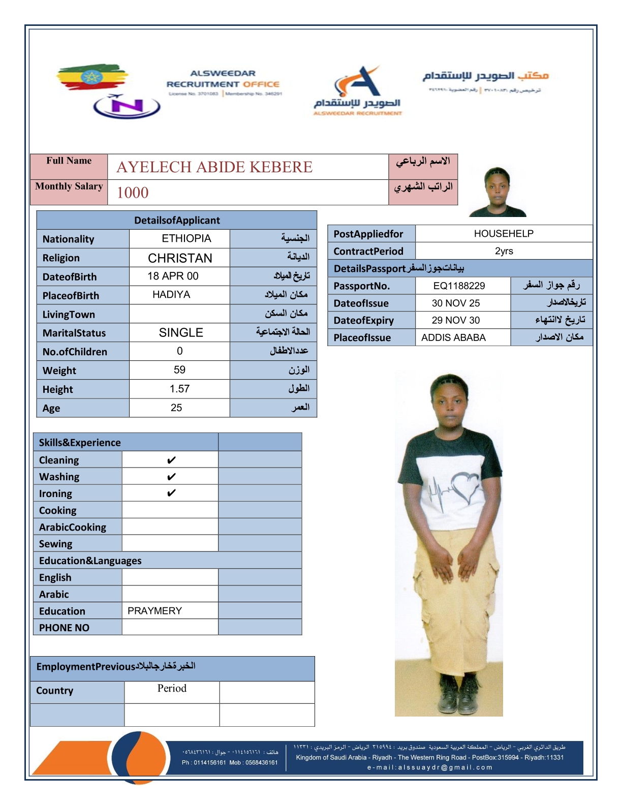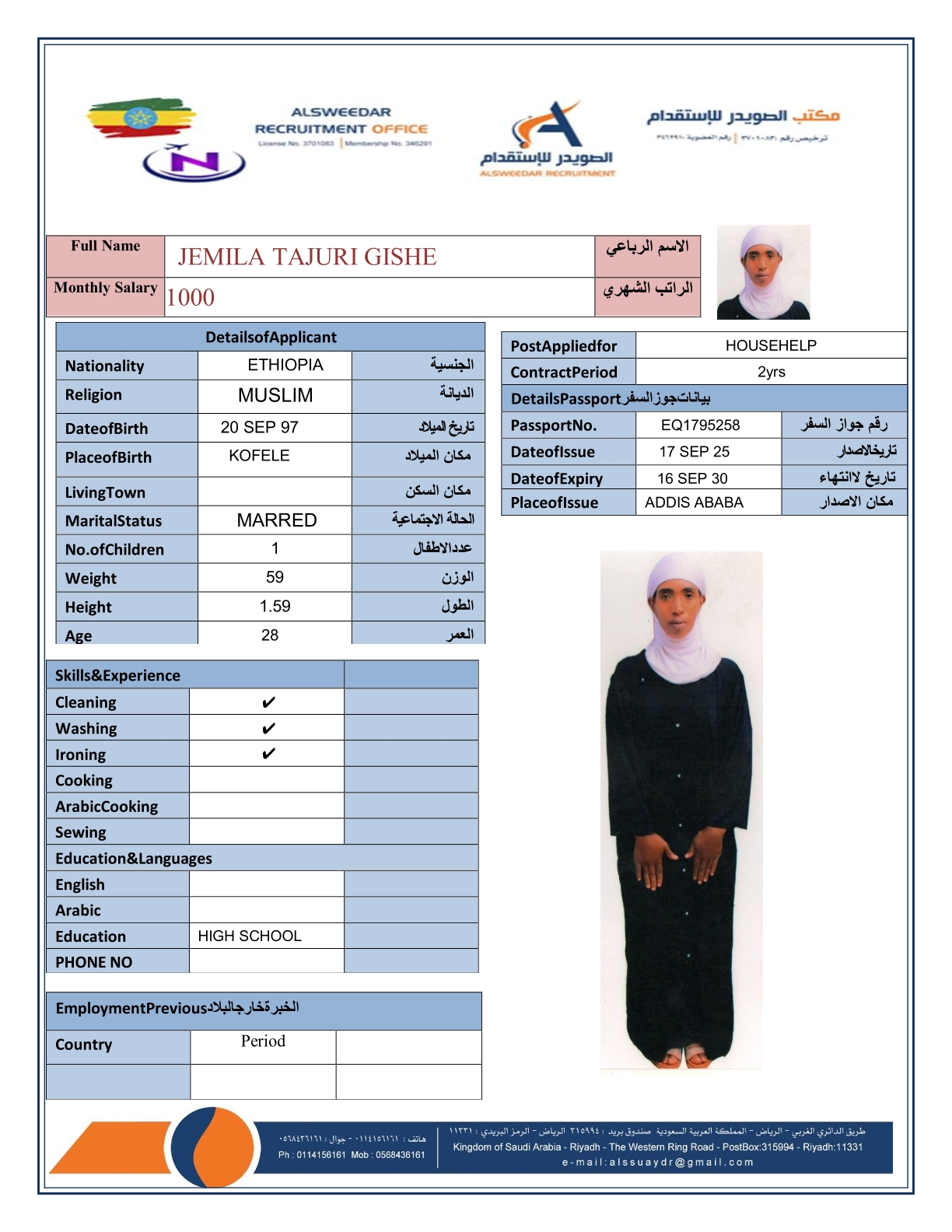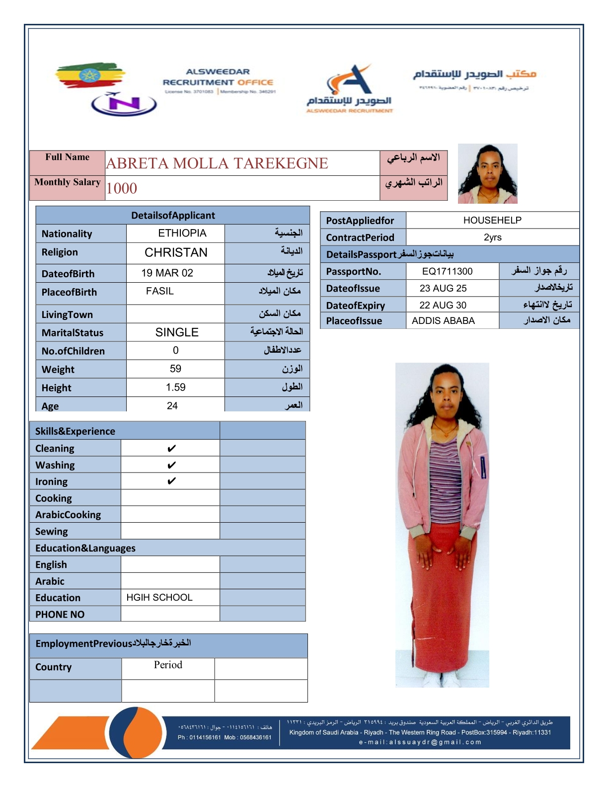 السير الذاتية لعاملات أثيوبيا