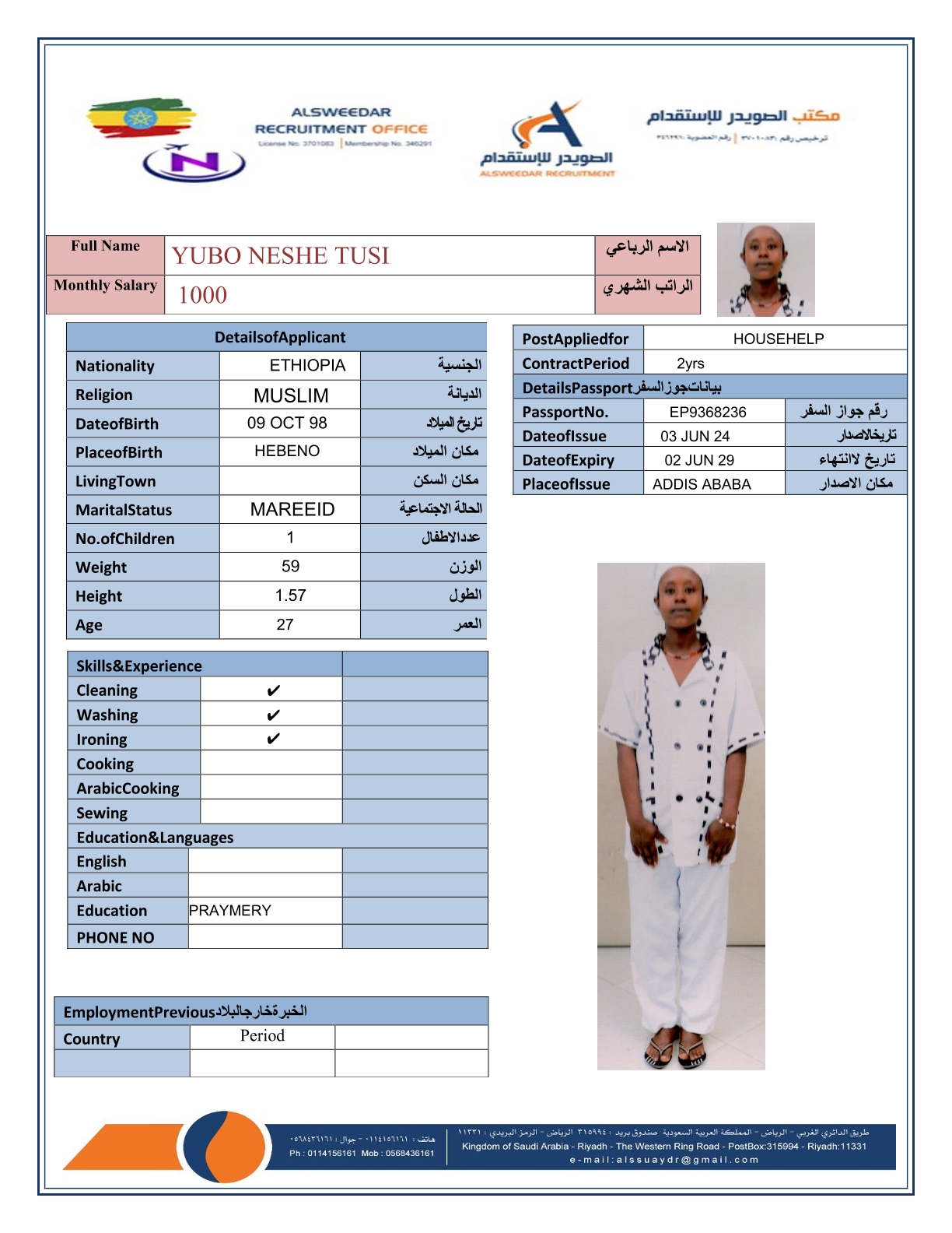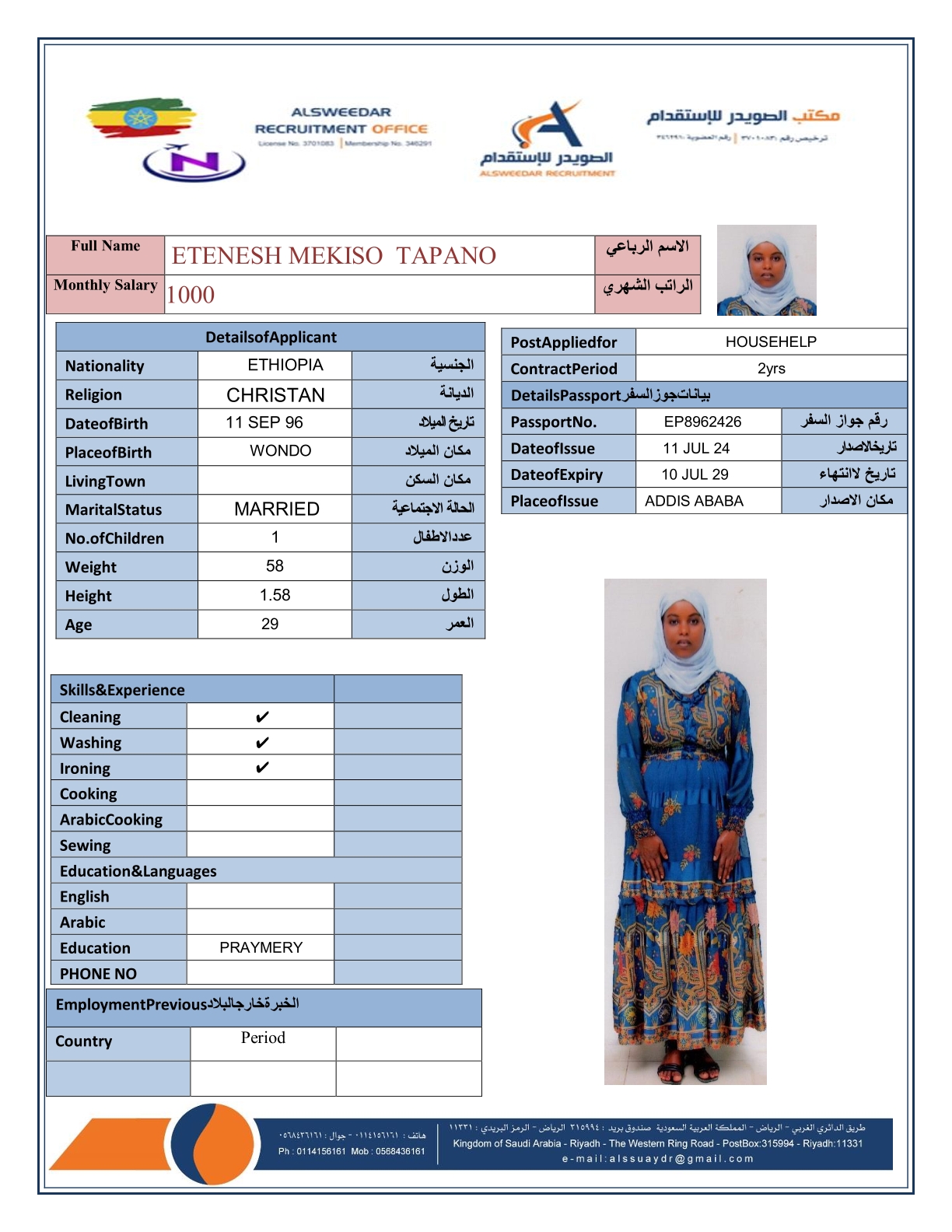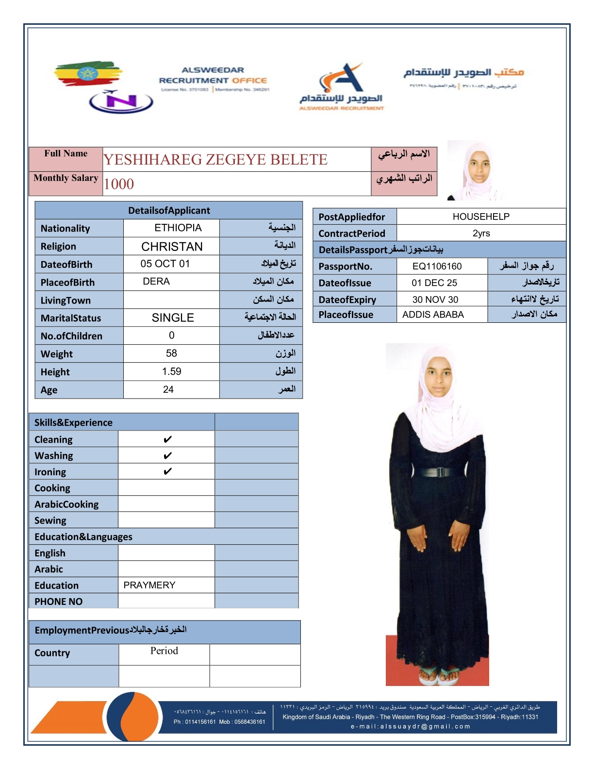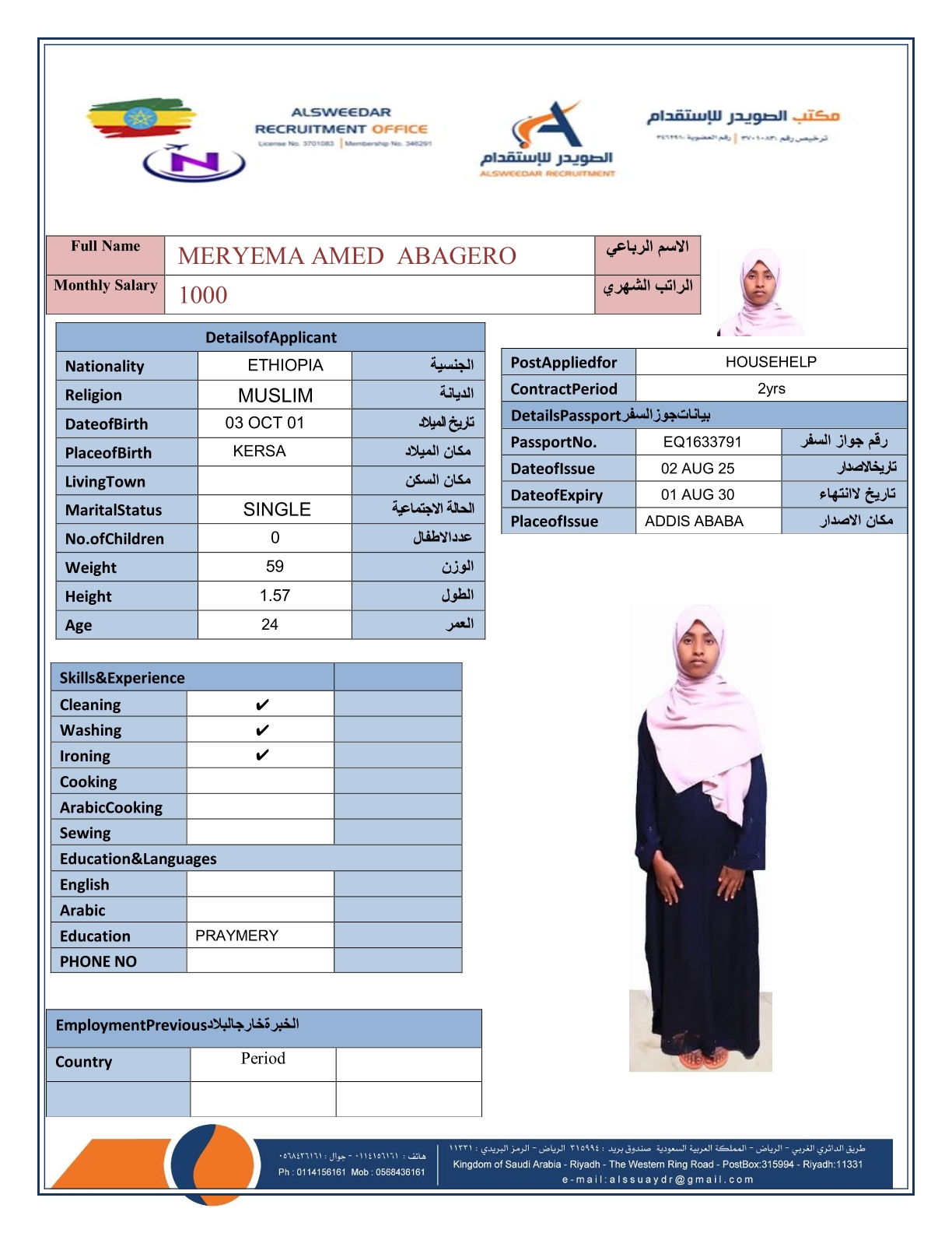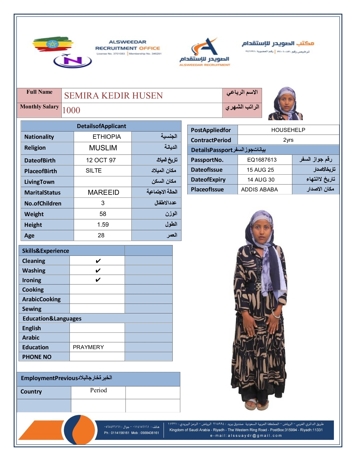 السير الذاتية لعاملات أثيوبيا