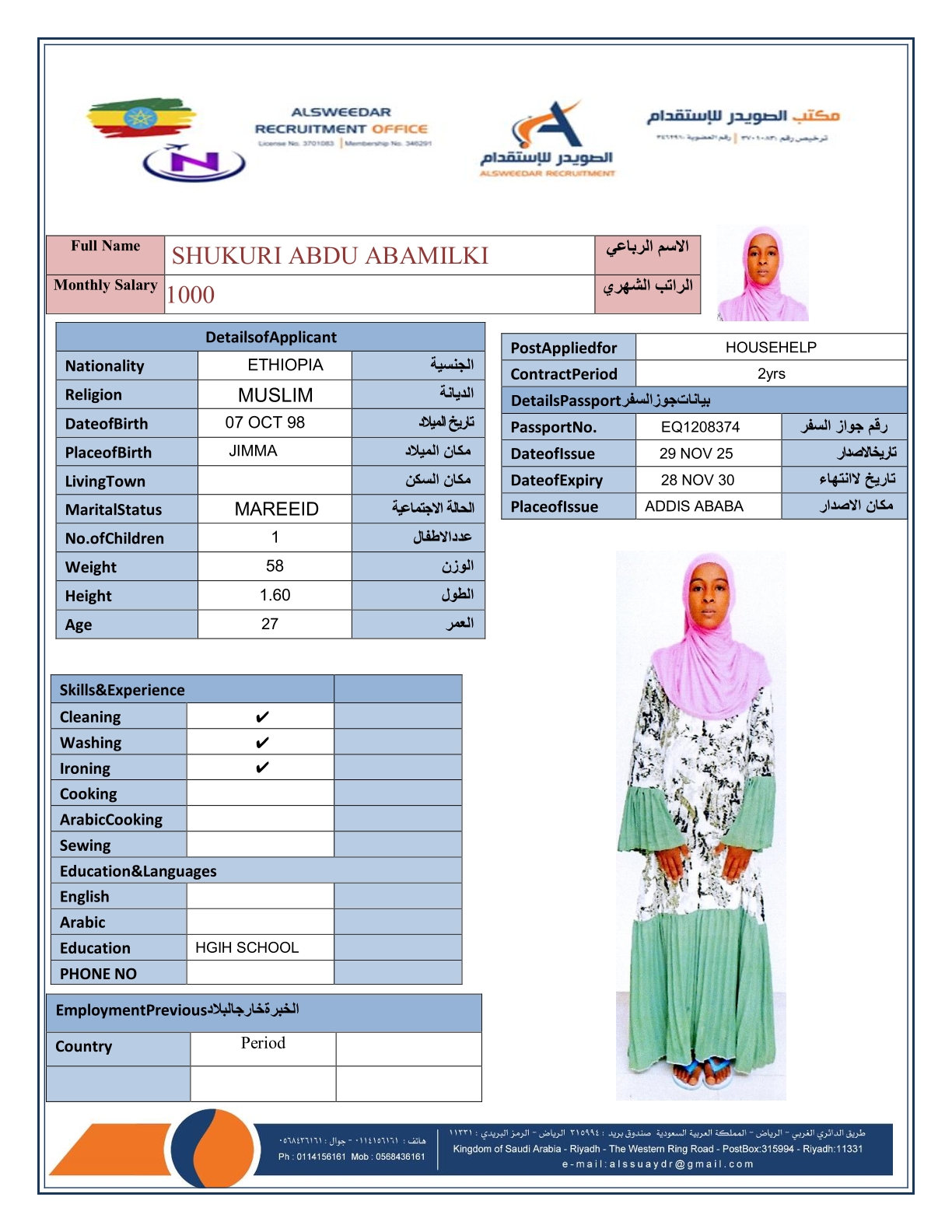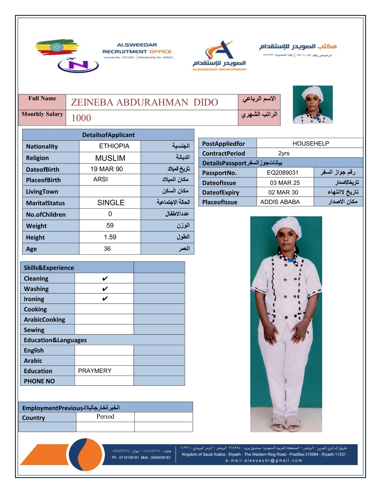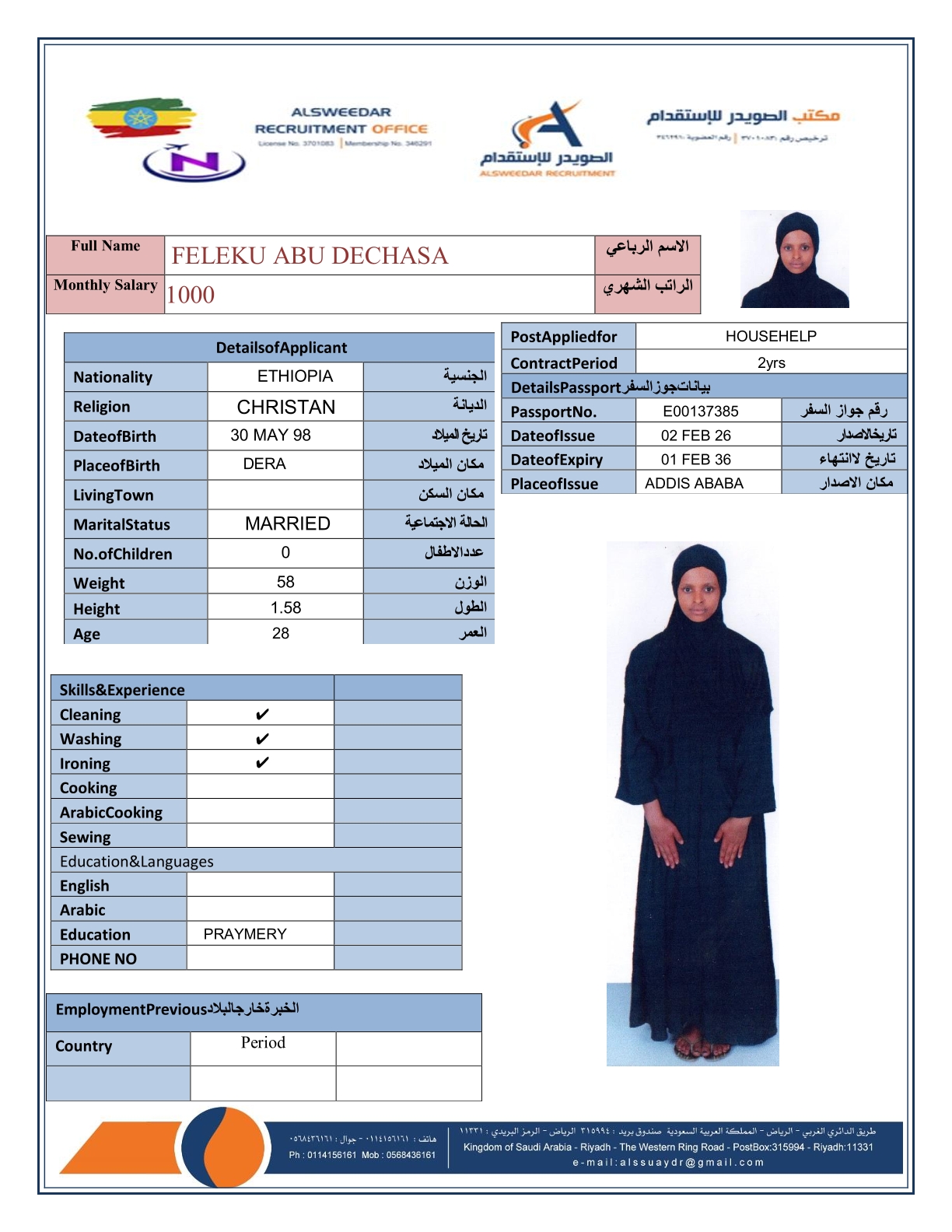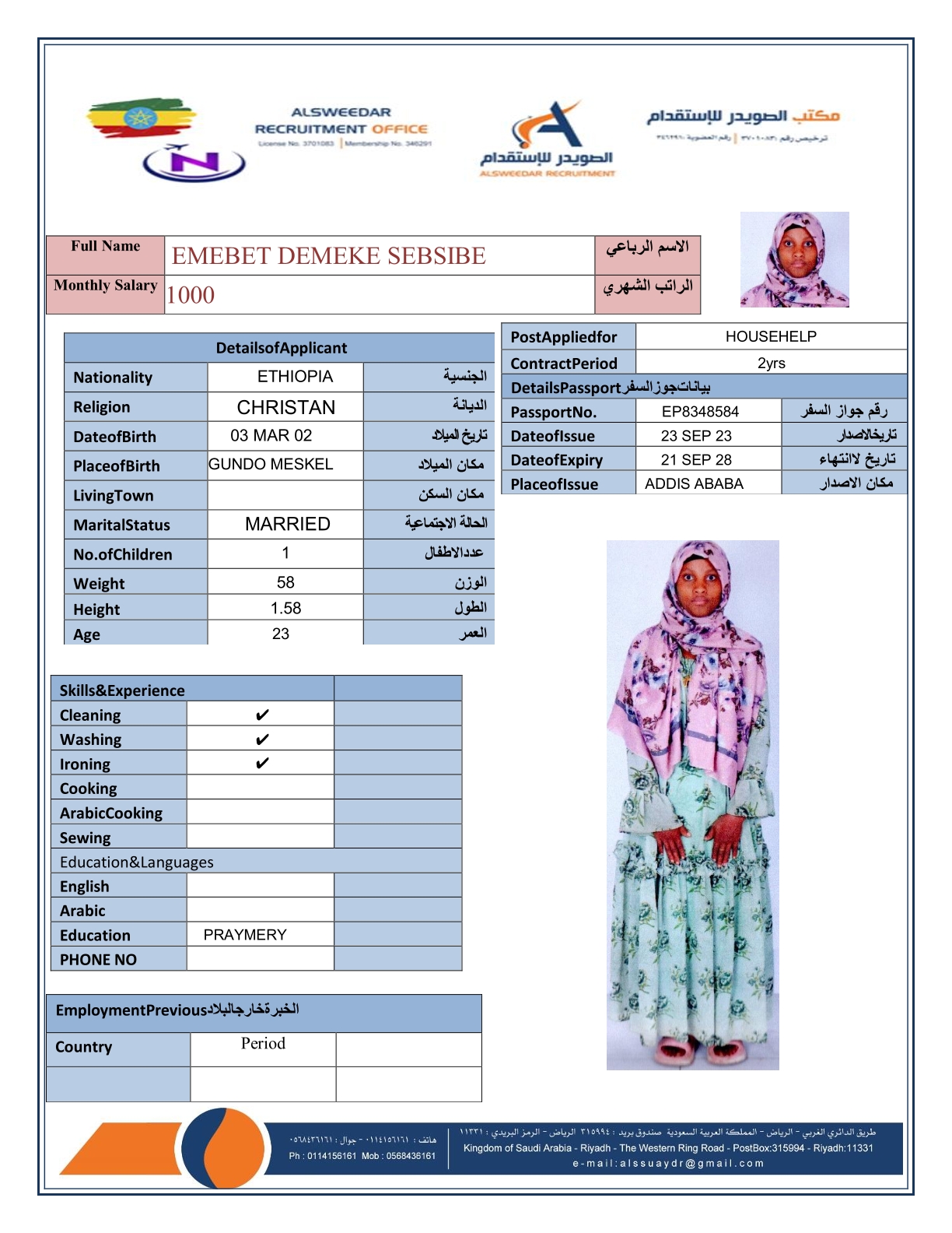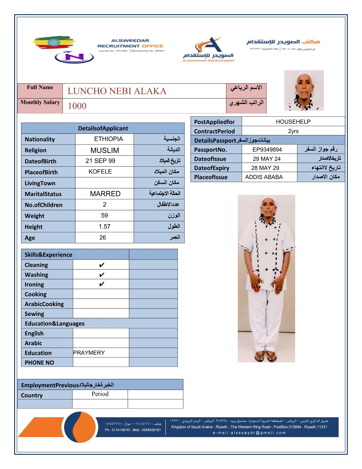 السير الذاتية لعاملات أثيوبيا